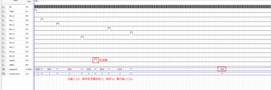 (3)由于这里设计的是一个四位的电子密码锁,所以当输入的数字键超过四个时,电路不予理会,而且不再显示第四个以后的数字。