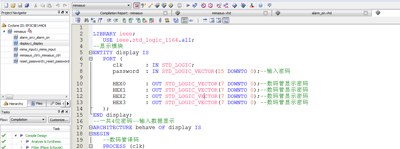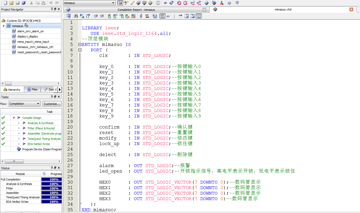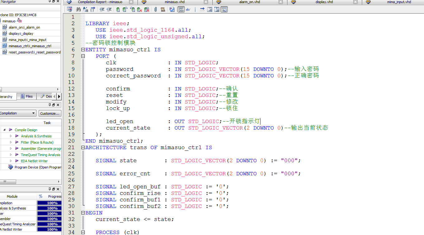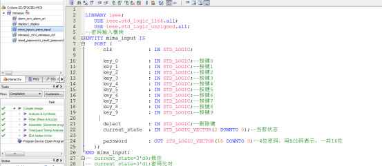 名称:基于FPGA的4位十进制密码锁VHDL代码Quartus仿真