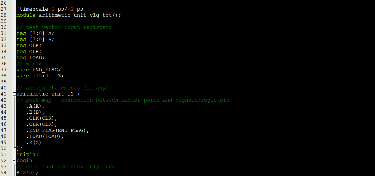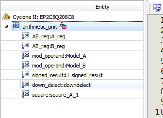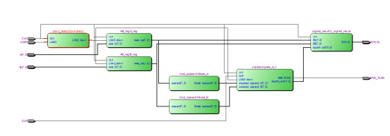 input?CLK, input?[7:0]?A,//有符号乘数A input?[7:0]?B,//有符号被乘数B input?CLR,//清零信号,高电平有效 input?LOAD,//加载信号,低电平有效 output?[15:0]?Z,//有符号乘积 output?END_FLAG//乘法结束指示信号 ); //LOAD信号的下降沿检测模块 down_delect?downdelect( .?CLK(CLK), .?LOAD(LOAD), .?LOAD_down(LOAD_down) ); wire?[7:0]?RA;//寄存器 wire?[7:0]?RB;//寄存器 //寄存器模块 AB_reg?A_reg( .?CLK(CLK), .?LOAD_down(LOAD_down), .?data_in(A), .?data_out(RA) ); //寄存器模块 AB_reg?B_reg( .?CLK(CLK), .?LOAD_down(LOAD_down), .?data_in(B), .?data_out(RB) ); wire?[7:0]?unsigned_operand_A; wire?[7:0]?unsigned_operand_B; //有符号数据转换为无符号数据 mod_operand?Model_A( .operand(RA), .Model_operand(unsigned_operand_A) ); //有符号数据转换为无符号数据 mod_operand?Model_B( .operand(RB), .Model_operand(unsigned_operand_B) ); wire?[15:0]?square_out;//无符号乘积结果 square?square_A_1?( .?CLK(CLK), .?CLR(CLR),//清零 .?LOAD_down(LOAD_down),//开始 .?unsigned_operand_A(unsigned_operand_A),//A .?unsigned_operand_B(unsigned_operand_B),//B .?END_FLAG(END_FLAG),//结束 .?square_out(square_out)//乘积 ); //无符号转换为有符号 signed_result?U_signed_result( .?CLK(CLK), .?RA(RA), .?RB(RB), .?square_out(square_out), .?Z(Z) ); endmodule