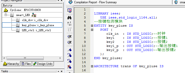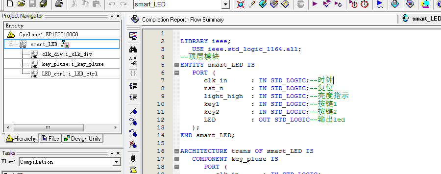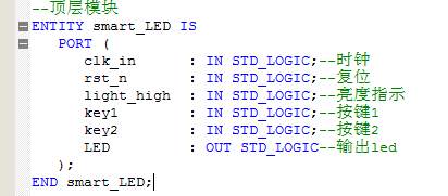 名称:亮度可调智能节能led灯VHDL代码Quartus仿真