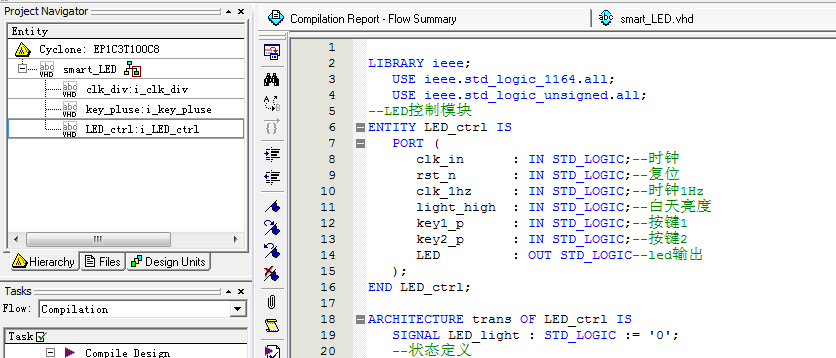 亮度可调智能节能led灯VHDL代码Quartus仿真