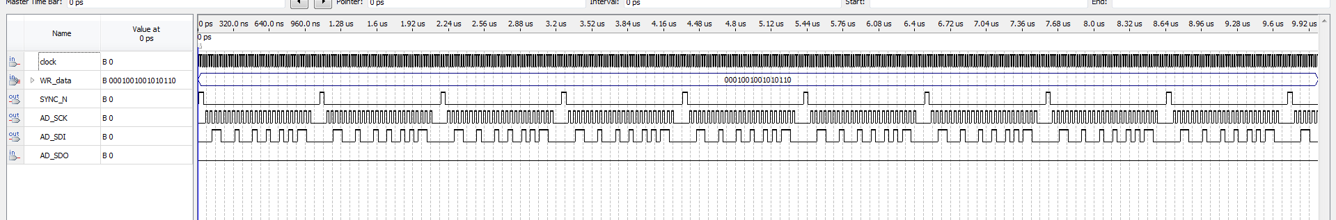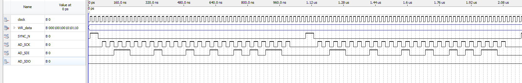 LIBRARY?ieee; ???USE?ieee.std_logic_1164.all; ???USE?ieee.std_logic_unsigned.all; ENTITY?AD5689_driver?IS ???PORT?( ??????clock????:?IN?STD_LOGIC;--50MHz ??????SYNC_N???:?OUT?STD_LOGIC;--AD5689接口 ??????AD_SDO???:?IN?STD_LOGIC;--AD5689接口 ??????AD_SCK???:?OUT?STD_LOGIC;--AD5689接口 ??????AD_SDI???:?OUT?STD_LOGIC;--AD5689接口 ??????WR_data??:?IN?STD_LOGIC_VECTOR(15?DOWNTO?0)--输入数字信号 ???); END?AD5689_driver; ARCHITECTURE?trans?OF?AD5689_driver?IS ???constant???CMD??????:?STD_LOGIC_VECTOR(3?DOWNTO?0)?:=?"0011";--写指令 ???constant???ADDRA????:?STD_LOGIC_VECTOR(3?DOWNTO?0)?:=?"0001";--通道A,通道B="1000",通道A和通道B="1001" ??? ???SIGNAL?cnt?????????:?STD_LOGIC_VECTOR(7?DOWNTO?0)?:=?"00000000"; ???SIGNAL?AD_SCK_buf??:?STD_LOGIC?:=?'0'; ??? ???SIGNAL?WR_data_buf?:?STD_LOGIC_VECTOR(15?DOWNTO?0)?:=?"0000000000000000"; ???SIGNAL?AD_SDI_buf??:?STD_LOGIC?:=?'0'; BEGIN ???PROCESS?(clock) ???BEGIN ??????IF?(clock'EVENT?AND?clock?=?'1')?THEN ?????????IF?(cnt?>=?"00110101")?THEN--53 ????????????cnt?<=?"00000000"; ?????????ELSE ????????????cnt?<=?cnt?+?"00000001";--分频计数器 ?????????END?IF; ??????END?IF; ???END?PROCESS; ??? ???PROCESS?(clock) ???BEGIN ??????IF?(clock'EVENT?AND?clock?=?'1')?THEN ?????????IF?(cnt?>=?"00000000"?AND?cnt?<=?"00000001")?THEN ????????????SYNC_N?<=?'1';--40ns之后,SYNC拉低,开始进入读取数据的状态 ?????????ELSE ????????????SYNC_N?<=?'0'; ?????????END?IF; ??????END?IF; ???END?PROCESS; ??? ???PROCESS?(clock) ???BEGIN ??????IF?(clock'EVENT?AND?clock?=?'1')?THEN--clock2二分频得到sck的值为--25MHz ?????????IF?(cnt?>?"00000001"?AND?cnt?<?"00110011")?THEN--1~51 ????????????IF?(cnt(0)?=?'0')?THEN ???????????????AD_SCK_buf?<=?'0';?--cnt[0]==0的时候,sck为下降沿 ????????????ELSE ???????????????AD_SCK_buf?<=?'1';--cnt[0]==1的时候,sck为上升沿