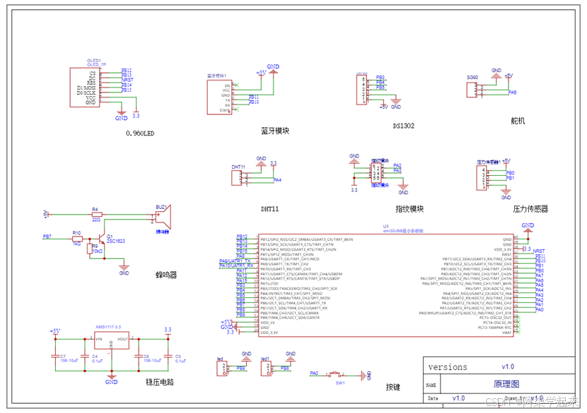 - 0.96寸OLED:用于显示的设备的状态,实现实时监测;