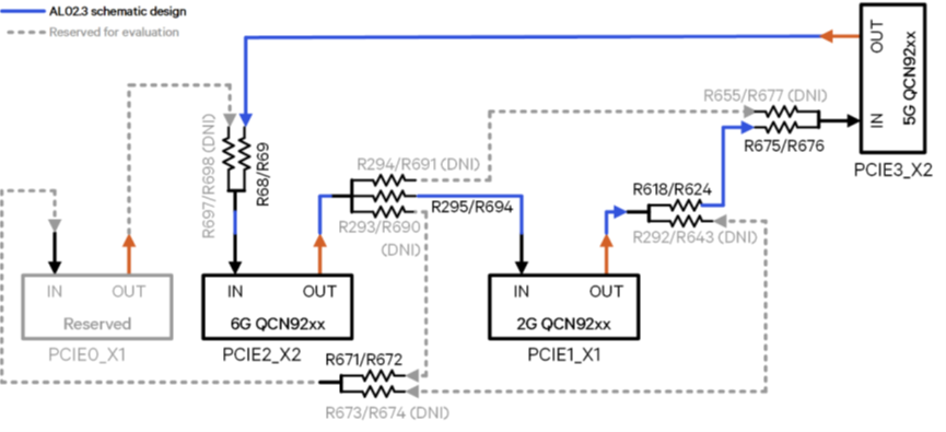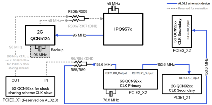 该设计支持多频段操作,并通过PCIe Gen3接口连接无线模块,确保高性能数据传输。此外,IPQ9570内置的2.4GHz 802.11ax Wi-Fi子系统未启用,进一步优化了系统资源分配。