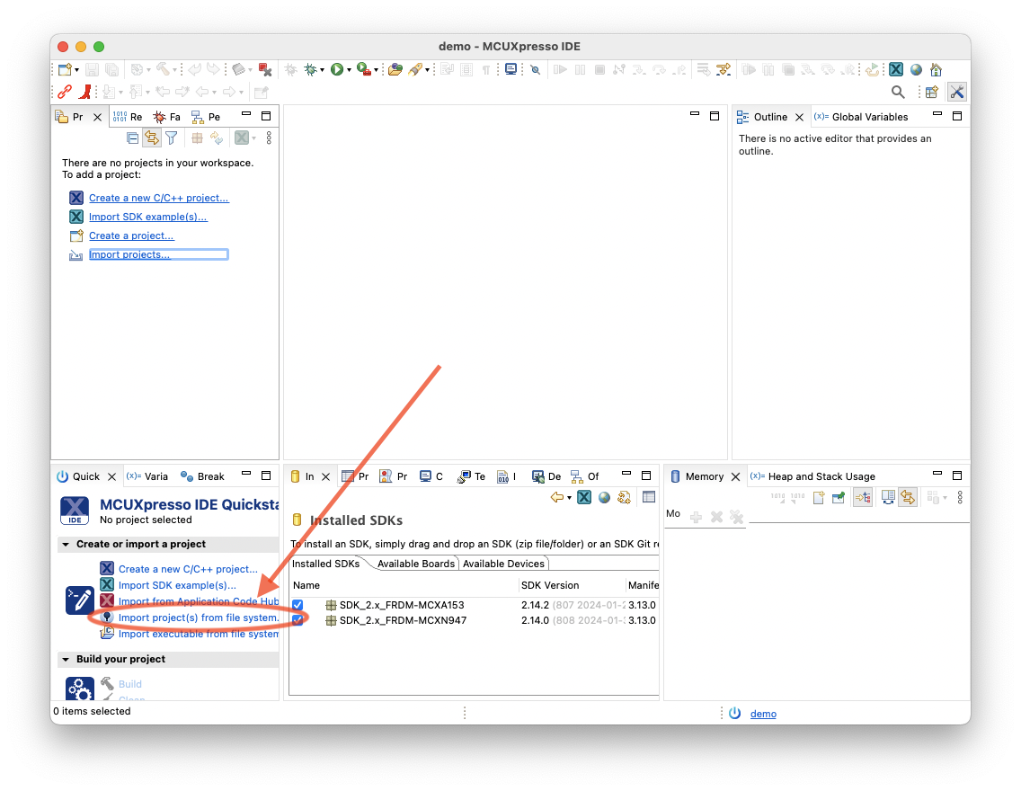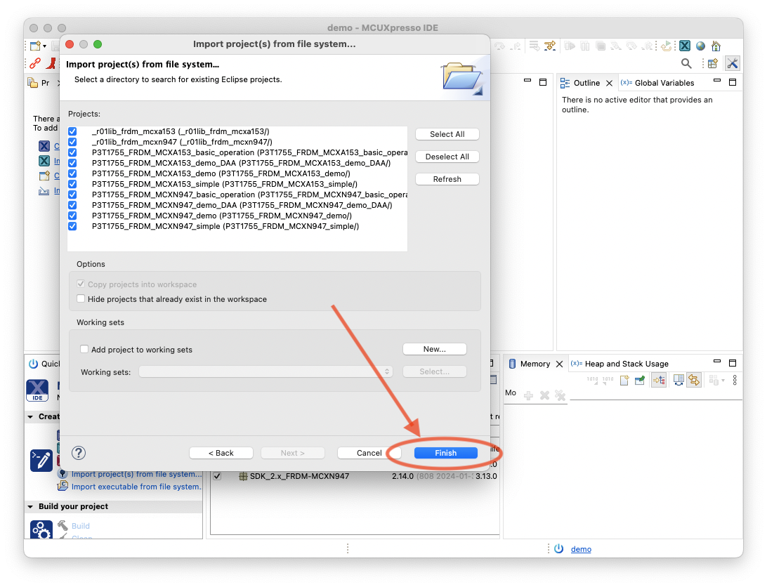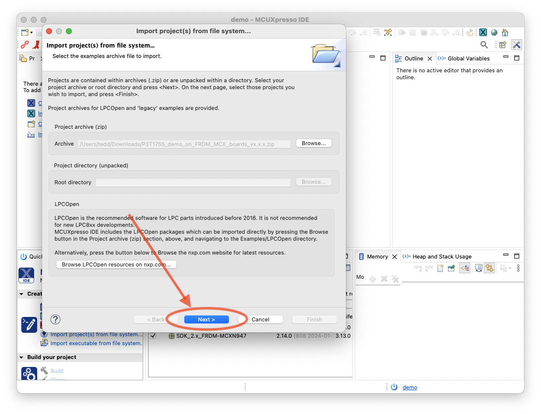 使用 MCUXpresso for VS Code 1.10 或更高版本正确导入项目。