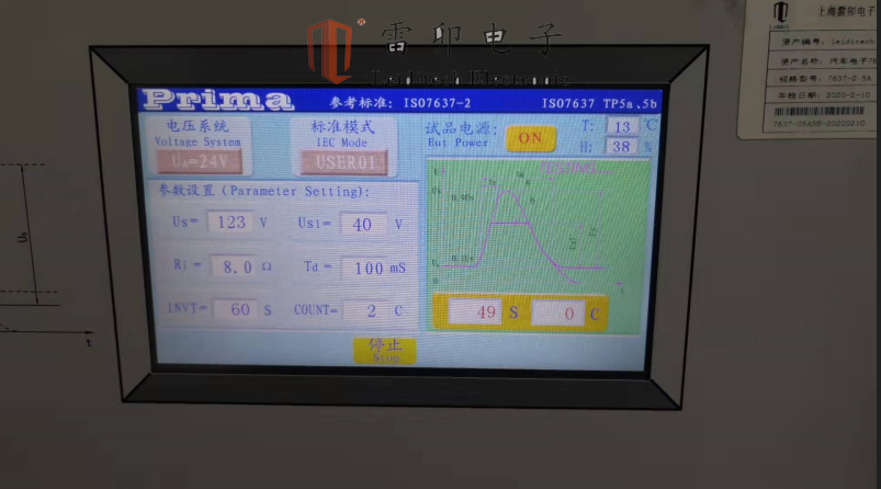 | 选雷卯型号 | ISO7637-TP5B | Us(V) | Us1(V) | Ri(Ω) | Td(ms) | INVT(S) | COUNT(C) | 测试结果 |