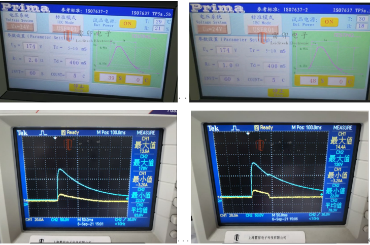 测试标准:抛负载测试,需通过ISO7637-TP5A。