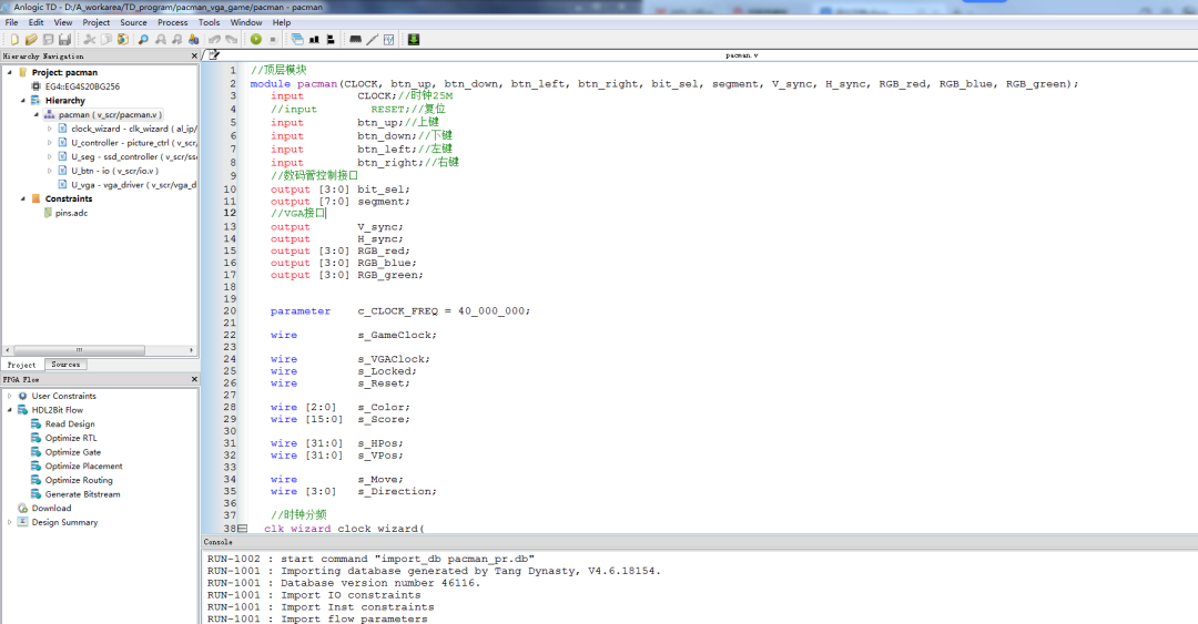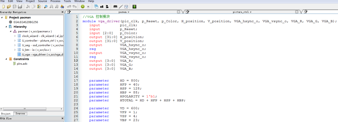 //顶层模块 pacman.v 前100行
