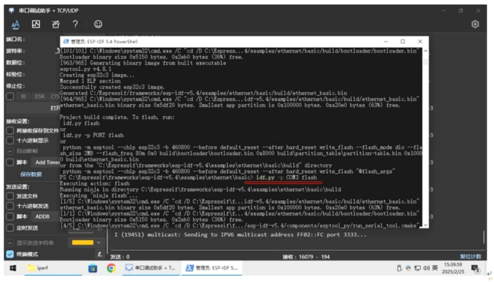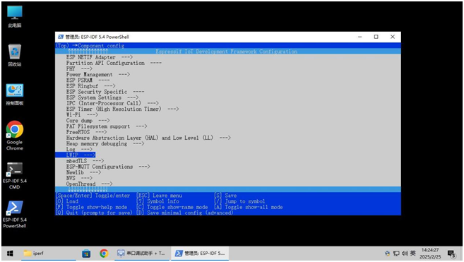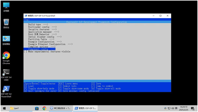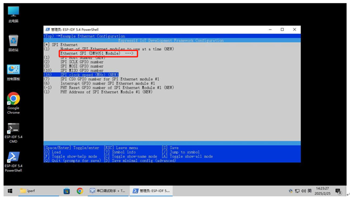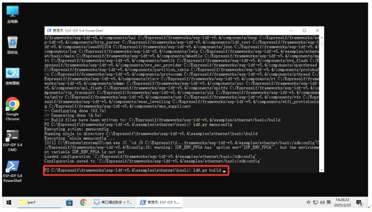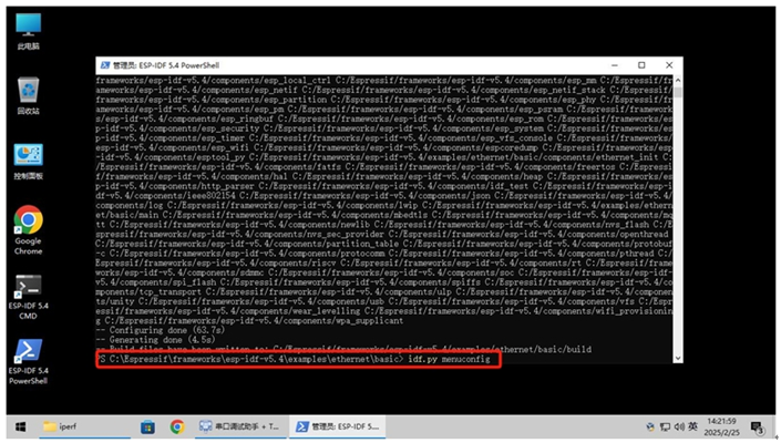 在这里和之前配置进行都一样,只是测试代码在c:Espressifframeworksesp-idf-v5.4examplesethernetiperf