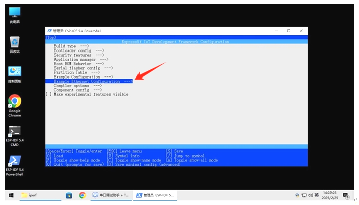 *步骤3:在ESP-IDF菜单中,选择 “Example Ethernet Configuration”