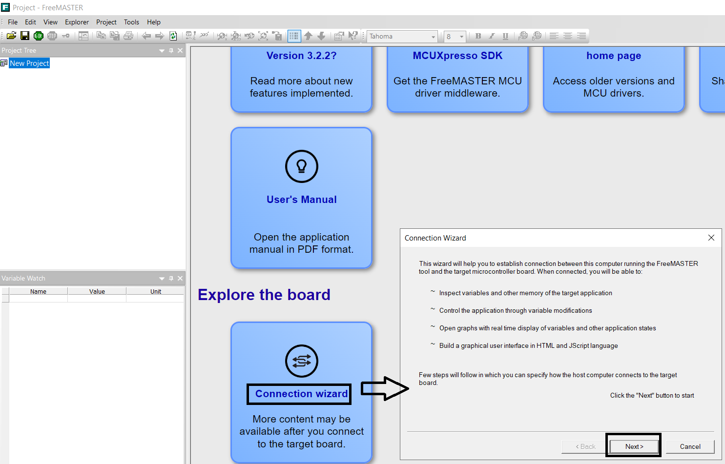 - 启动安装在 Windows PC 上的 FreeMASTER 应用程序。