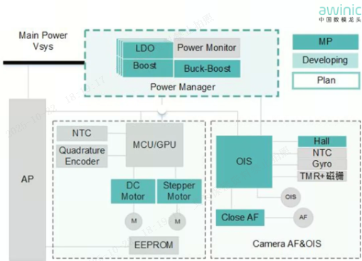 为应对长时间拍摄需求,中国数模龙头艾为电子率先提出动态调压方案:采用Buck Boost + SOC OIS架构,实现功耗平均降低40%以上,满足演唱会、赛事等持续摄录场景。