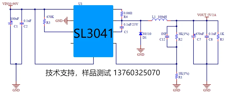 SL3041:100V耐压高效降压芯片的12V/5V 2A恒压解决方案?