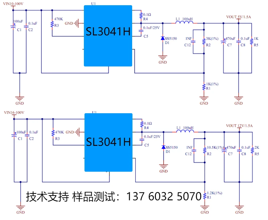 120V耐压内置MOS降压芯片SL3041H:120V降压12V、120V降压5