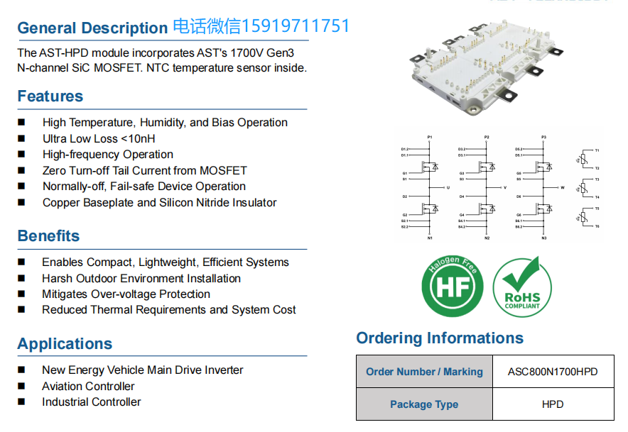 ASC800N1700HPD碳化硅模块1700V800A三相全桥