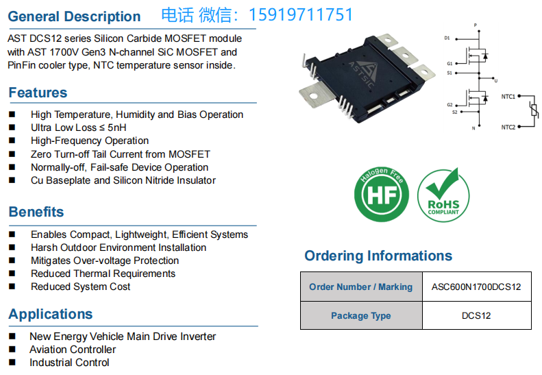 扫码加入ASC600N1700DCS12碳化硅模块170V600A:DCM