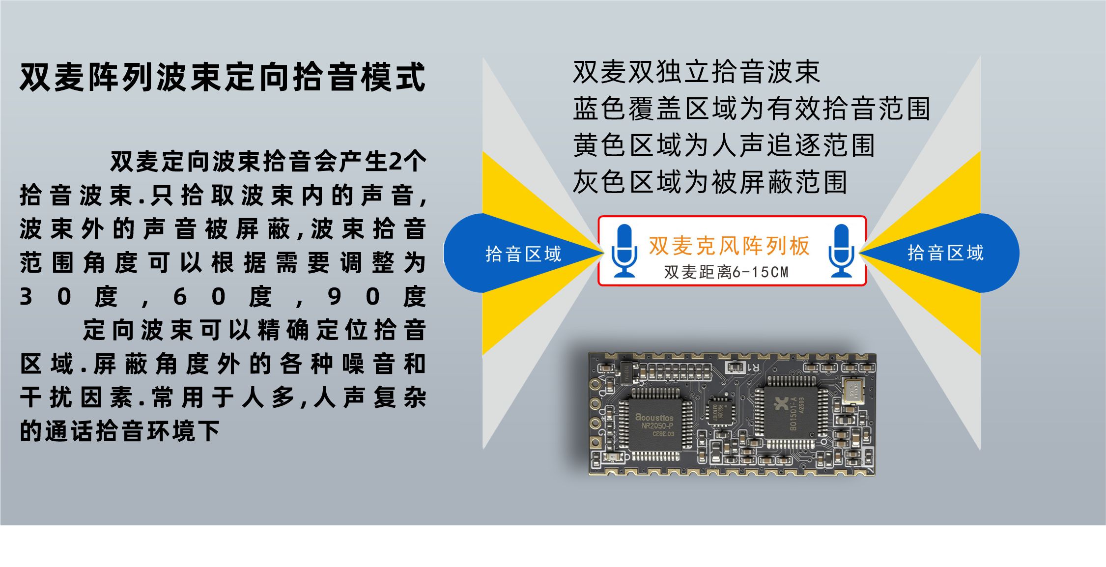 3. 双波束拾音(BF):定向收音,精准分区