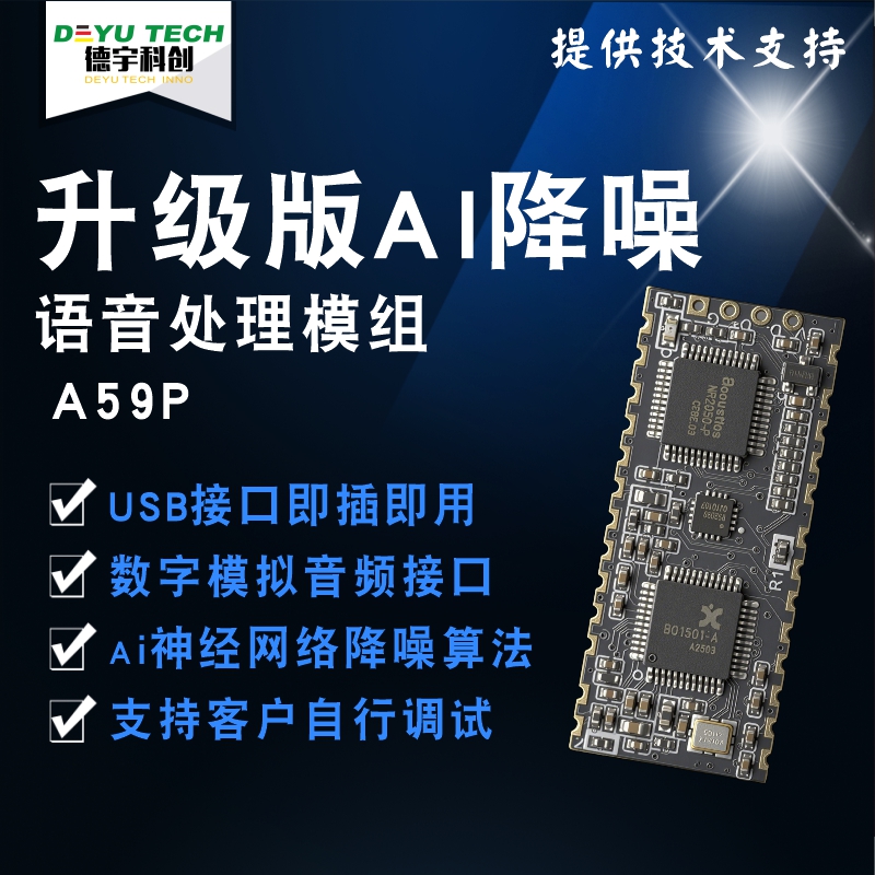 A-59P 多功能语音处理模组|AI 降噪 + 消回音 + USB 即插即用|商业级语音解决方案